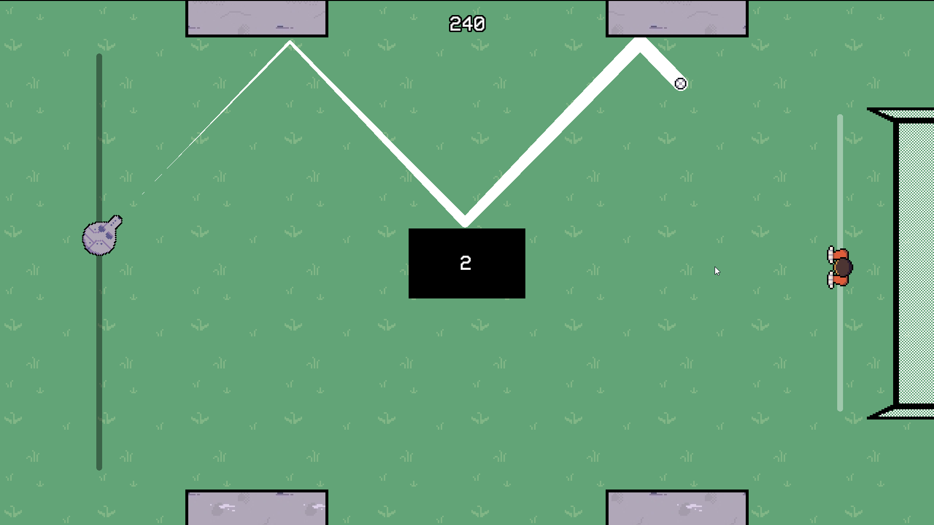 Score points by doing trickshots and scoring a goal. Then defend the goal from those same shots. Can you overcome an artificial copy of yourself?